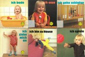 Ich spiele-Ich bade-Ich esse-Ich gehe-Ich gehe schlafen-Ich bin zu Hause-Ich ziehe mich an